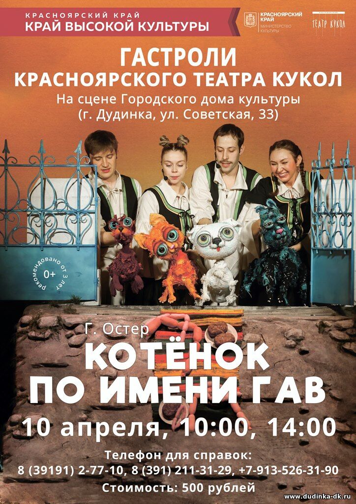 Городской Дом культуры приглашает на спектакль Красноярского театра кукол «Котёнок по имени Гав»